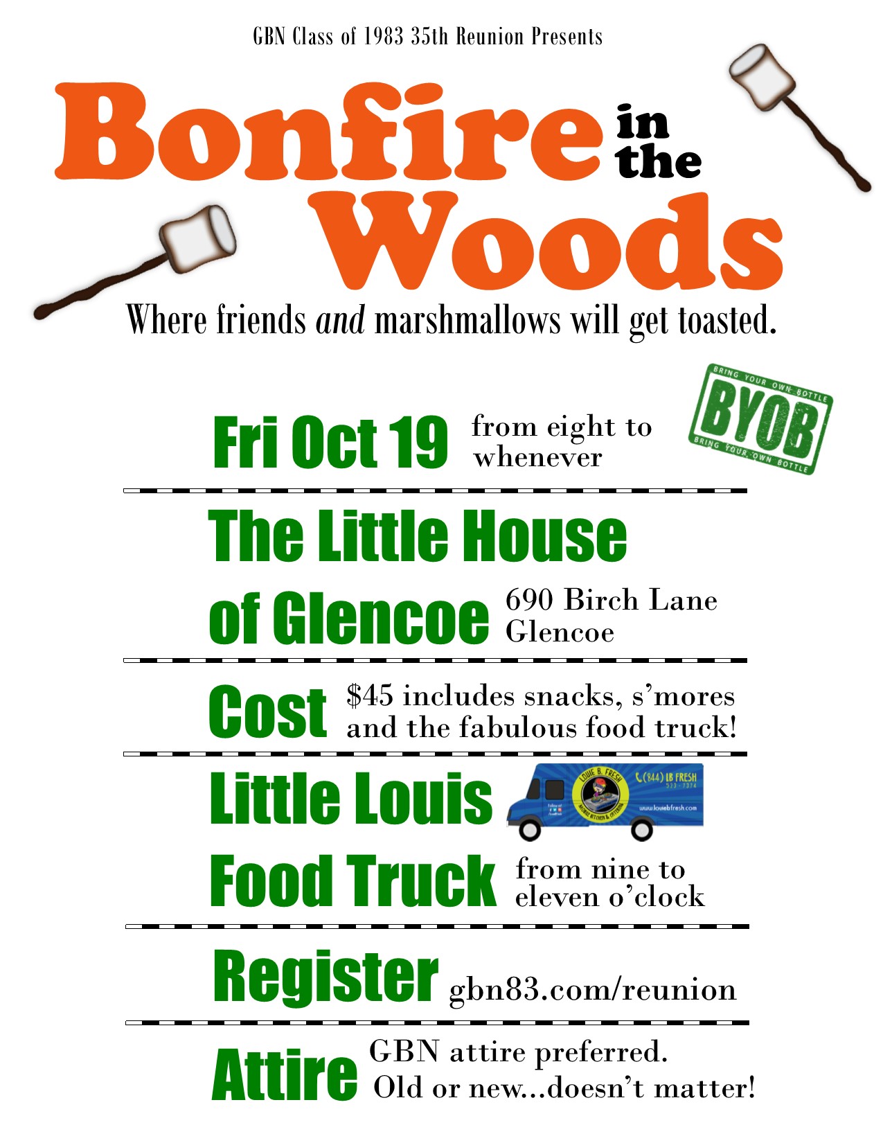 You must register to confirm your ticket. Send email to reunion@gbn83.com to register. |